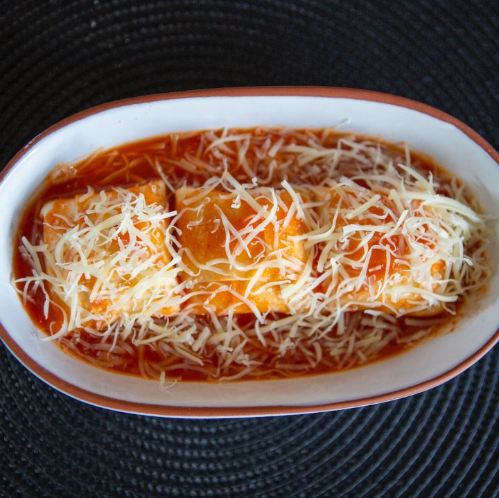 24 unidades de massa, 1L de molho e queijo ralado.