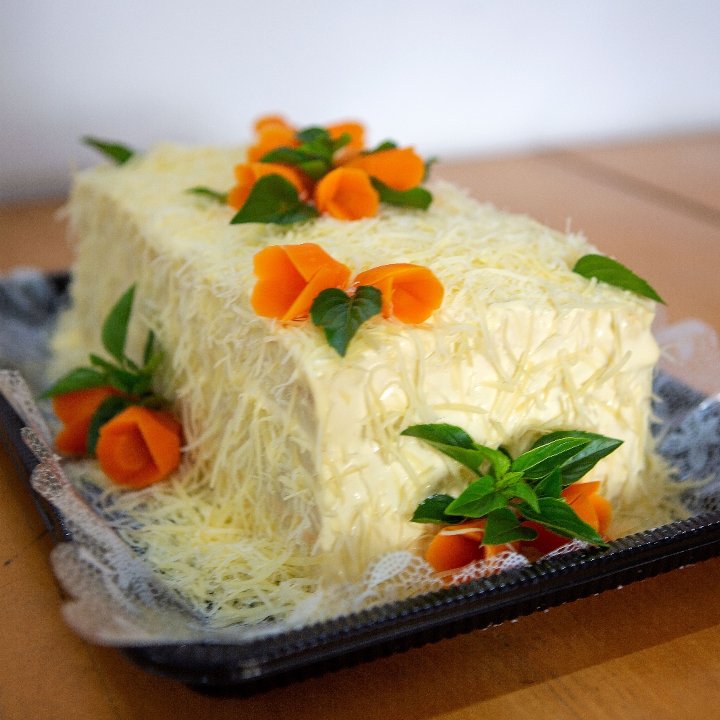 Recheio: pasta de frango, pasta de presunto, queijo com maçã e pasta de cenoura